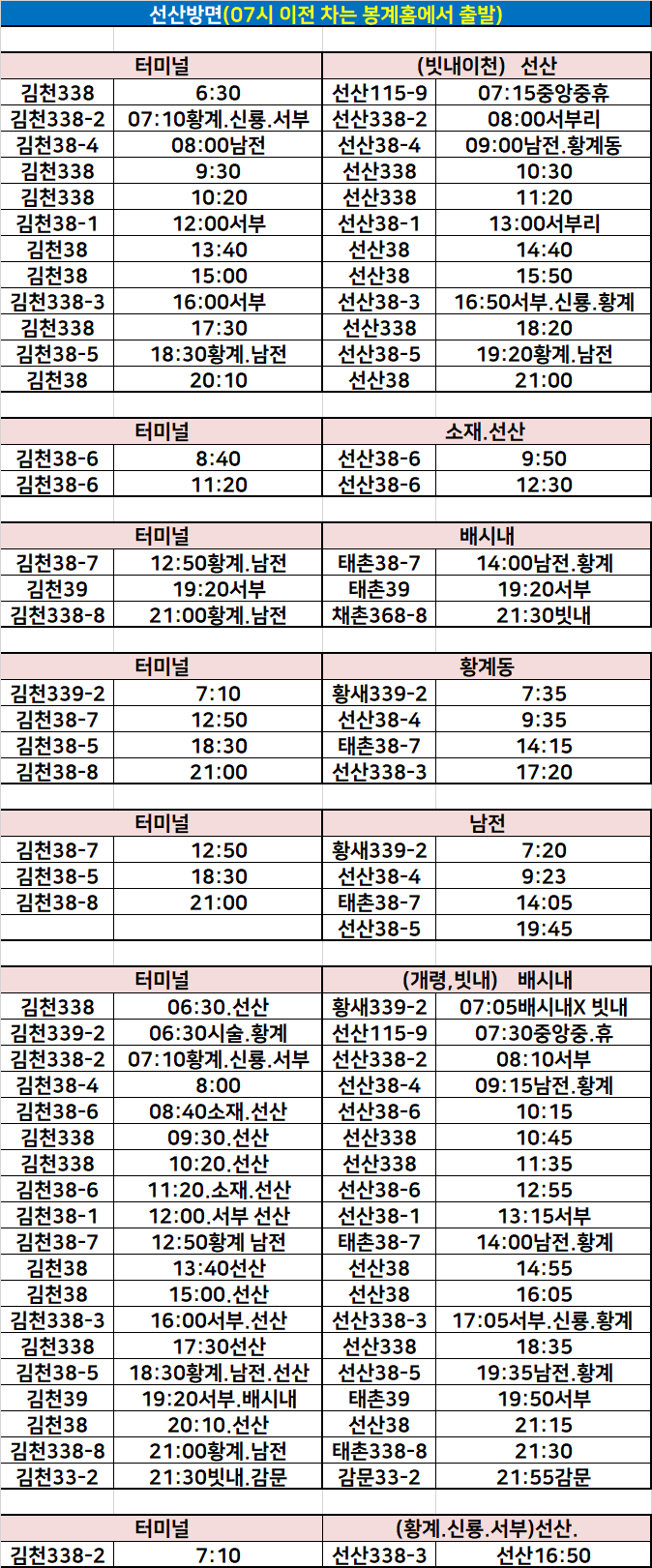 터미널↔선산 방면 시내버스