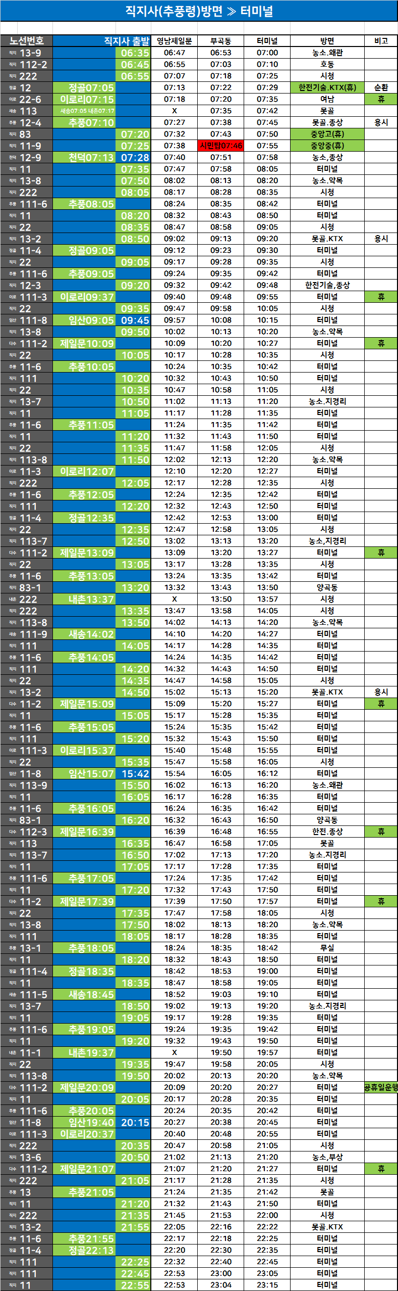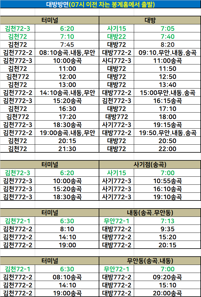 터미널↔대방 방면 시내버스