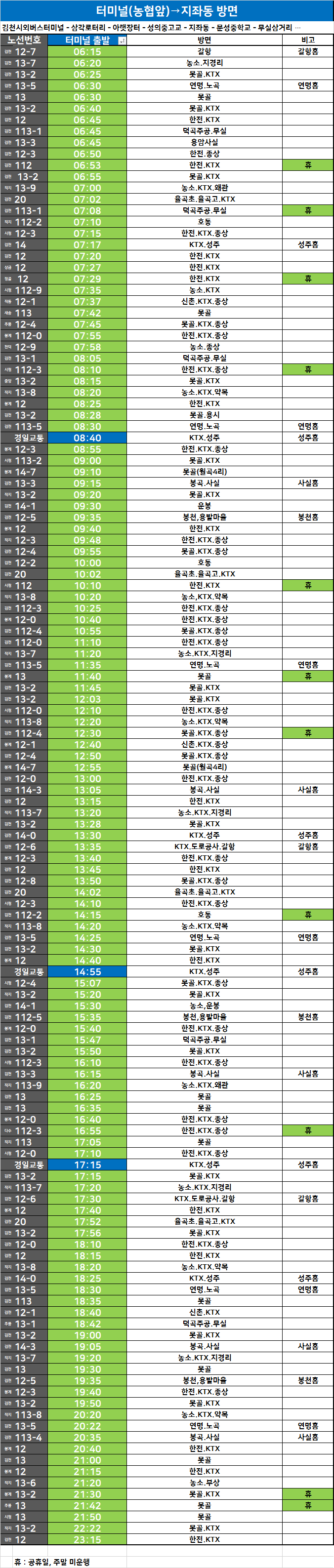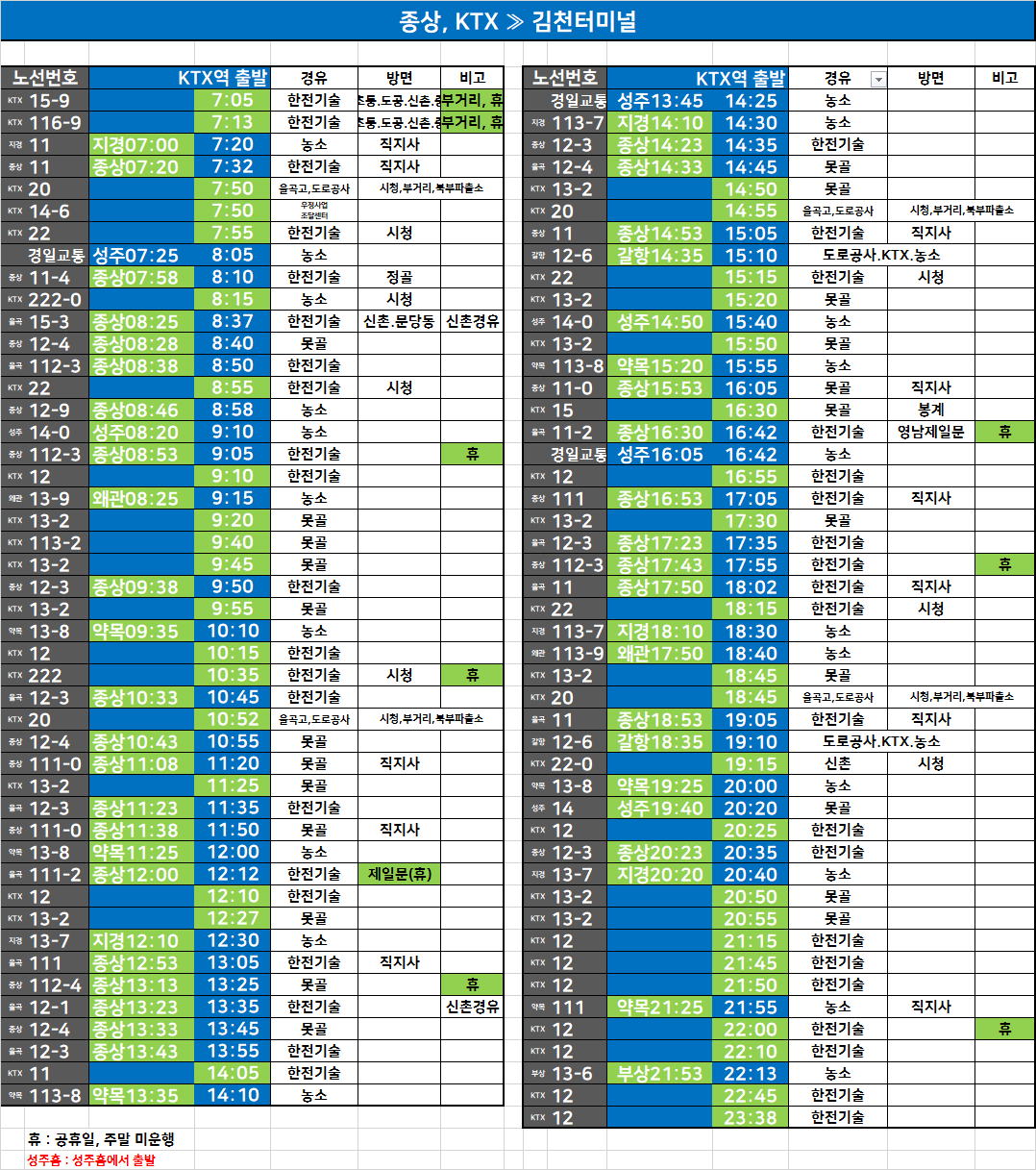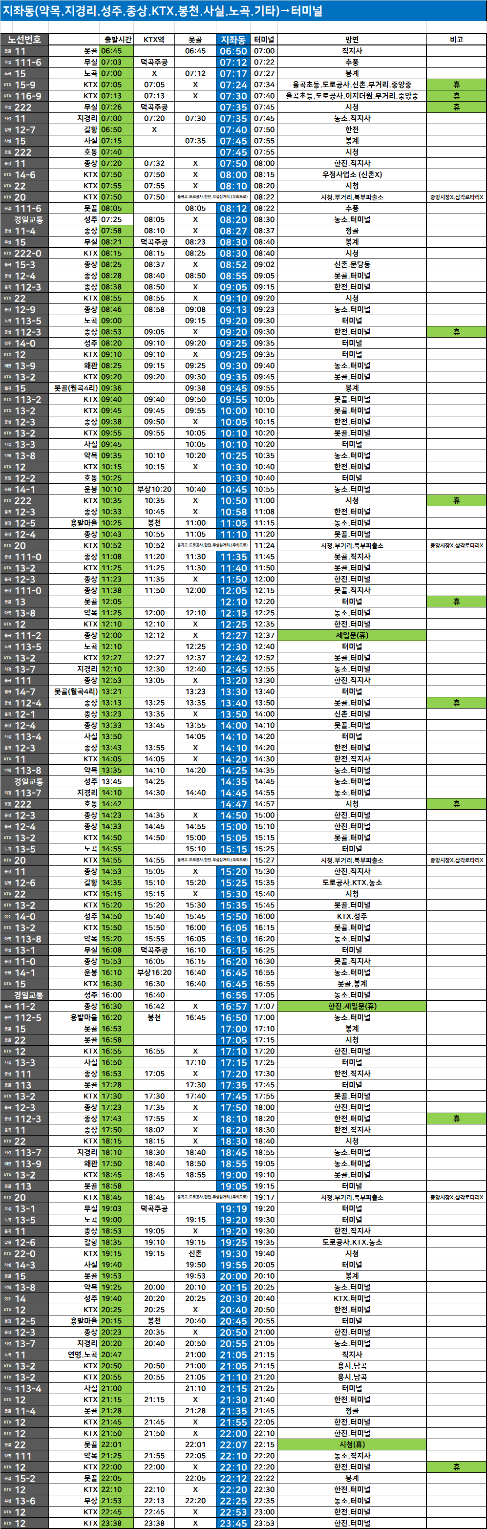 터미널↔KTX,종상 방면 시내버스