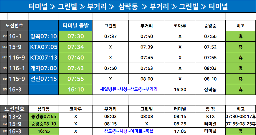 터미널↔그린빌,삼락동 시내버스