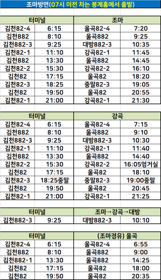 터미널↔조마 방면 시내버스