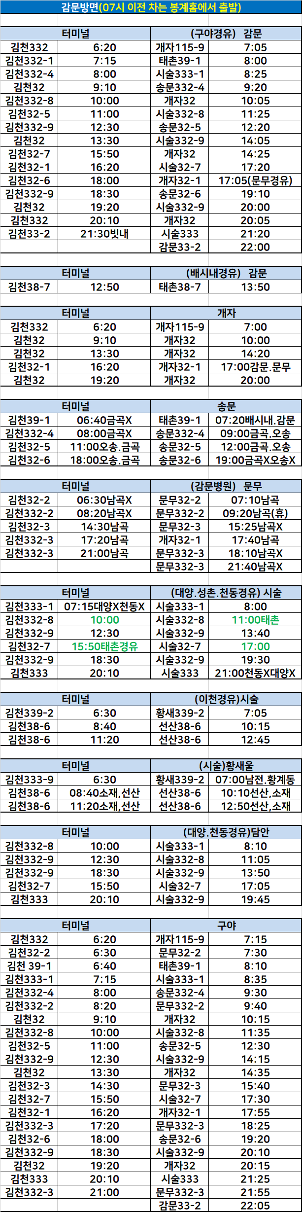 터미널↔감문 방면 시내버스