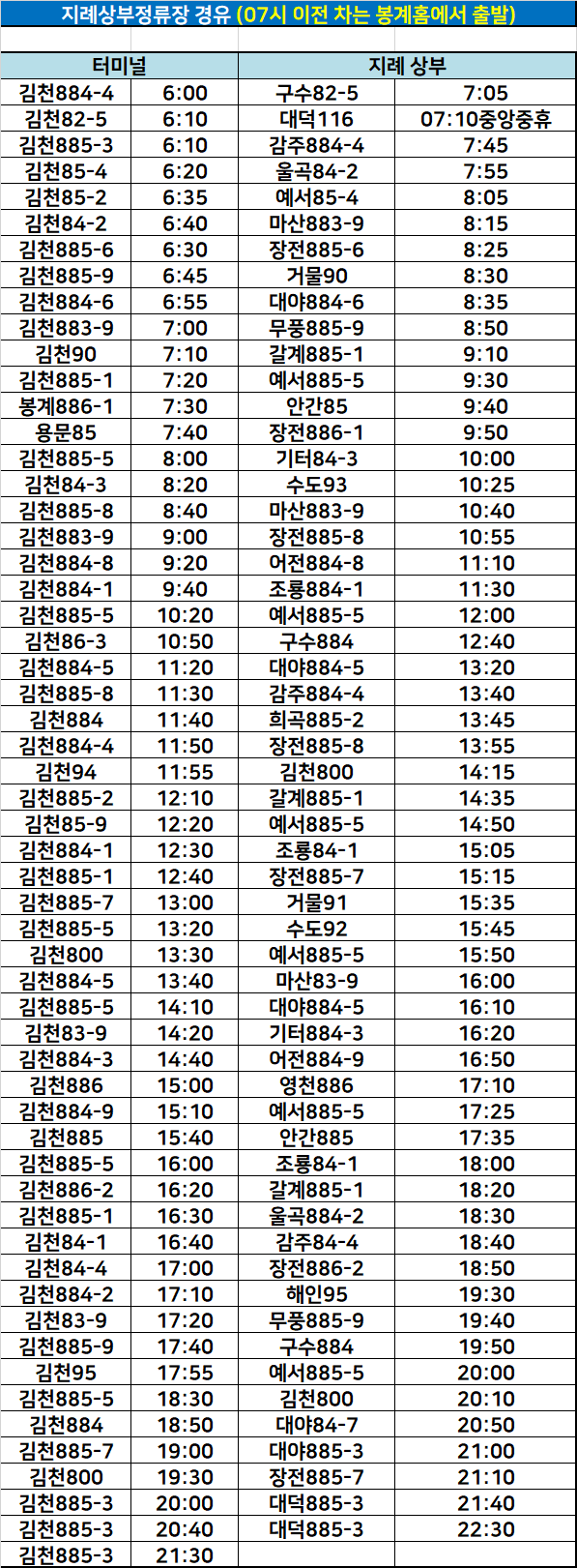 터미널↔지례상부 정류장 경유 시내버스