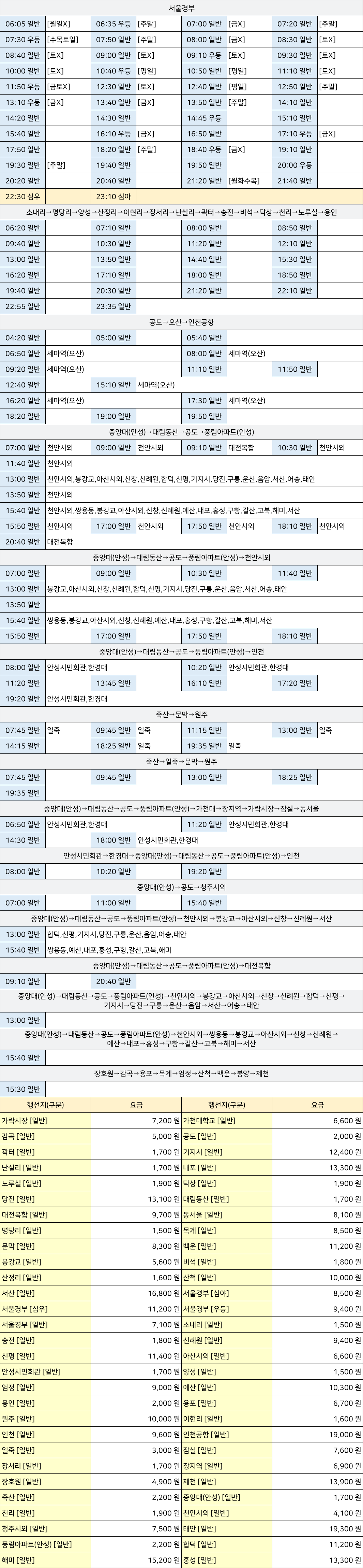 | 공도시외고속버스정터미널 시간표 [공도정류장 공도정류소 공도읍터미널 용두리터미널] (0) | 2025.04.10 |