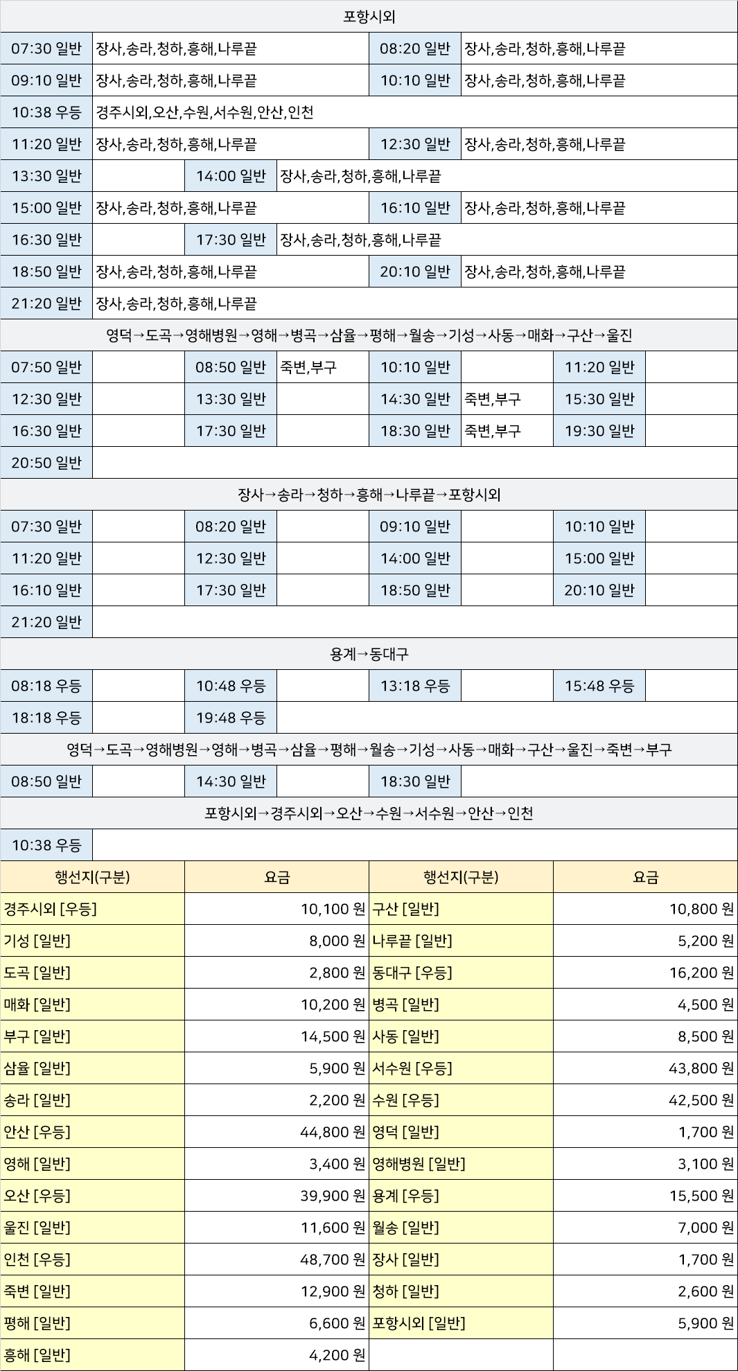 강구 시외버스 터미널 시간표/요금표 2025년 05월 09일 기준