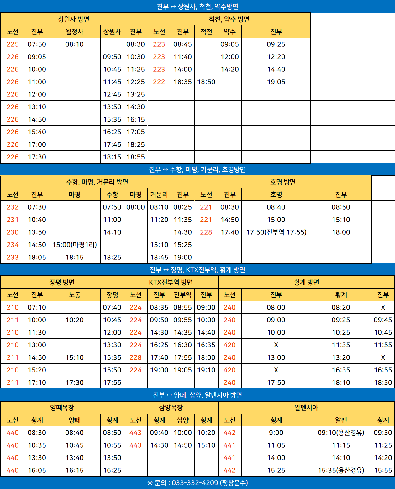 진부 시외버스 터미널 시간표/요금표 2025년 03월 27일 기준