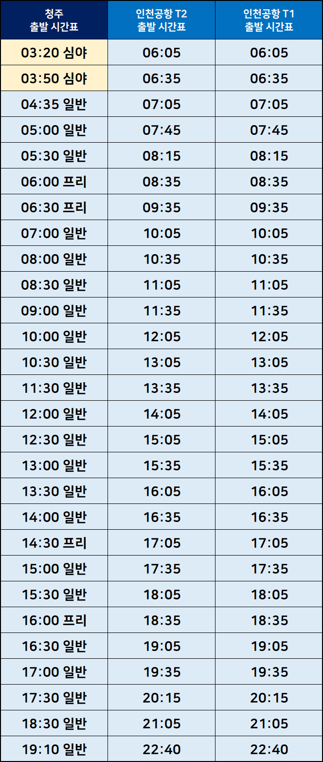 ▶ 청주 ↔ 인천공항 운행 시간표