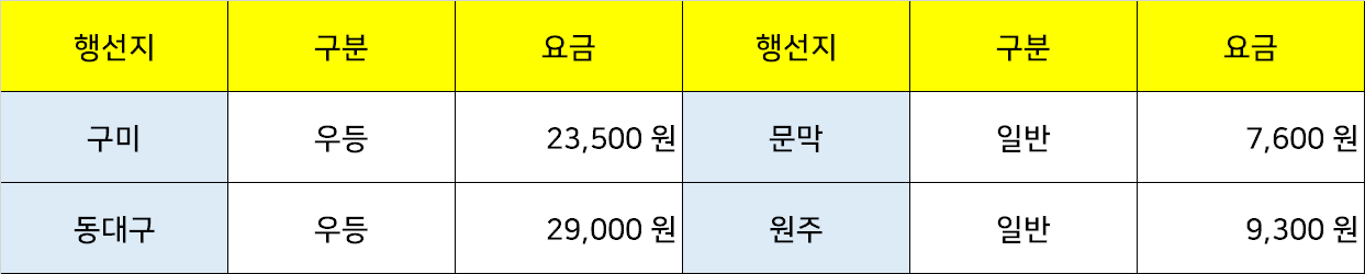 구리시외버스정류장 구리버스정류장 구리시외버스터미널 → "문막→원주, 구미, 동대구".