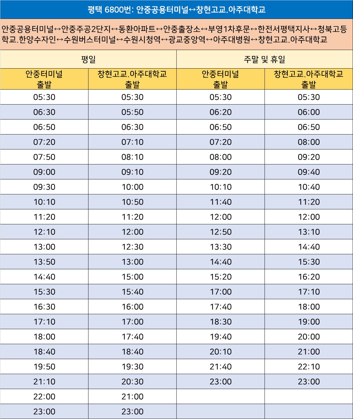 평택 6800번: 안중공용터미널↔창현고교.아주대학교