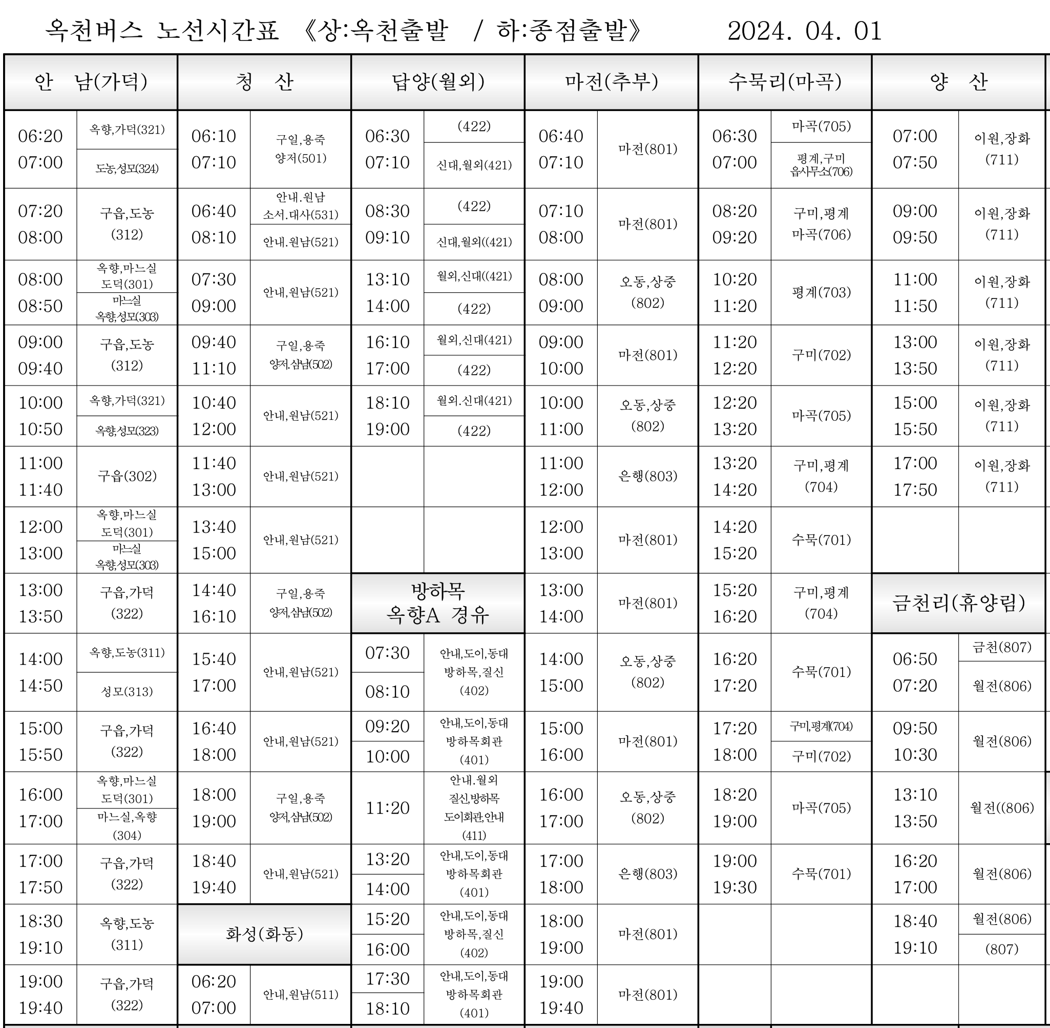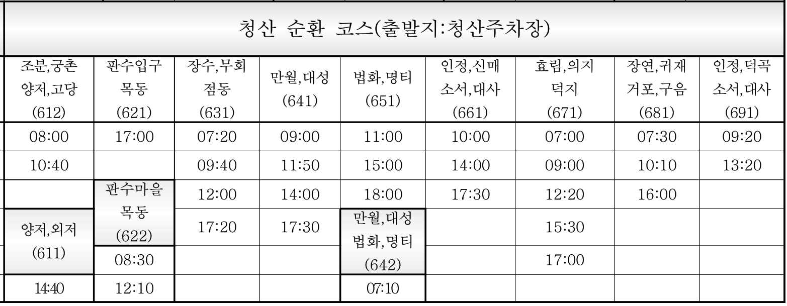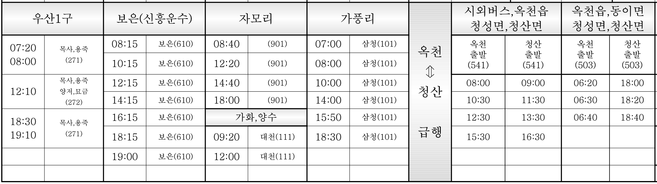 옥천군청 군내 버스 시간표 - 옥천군청 자료