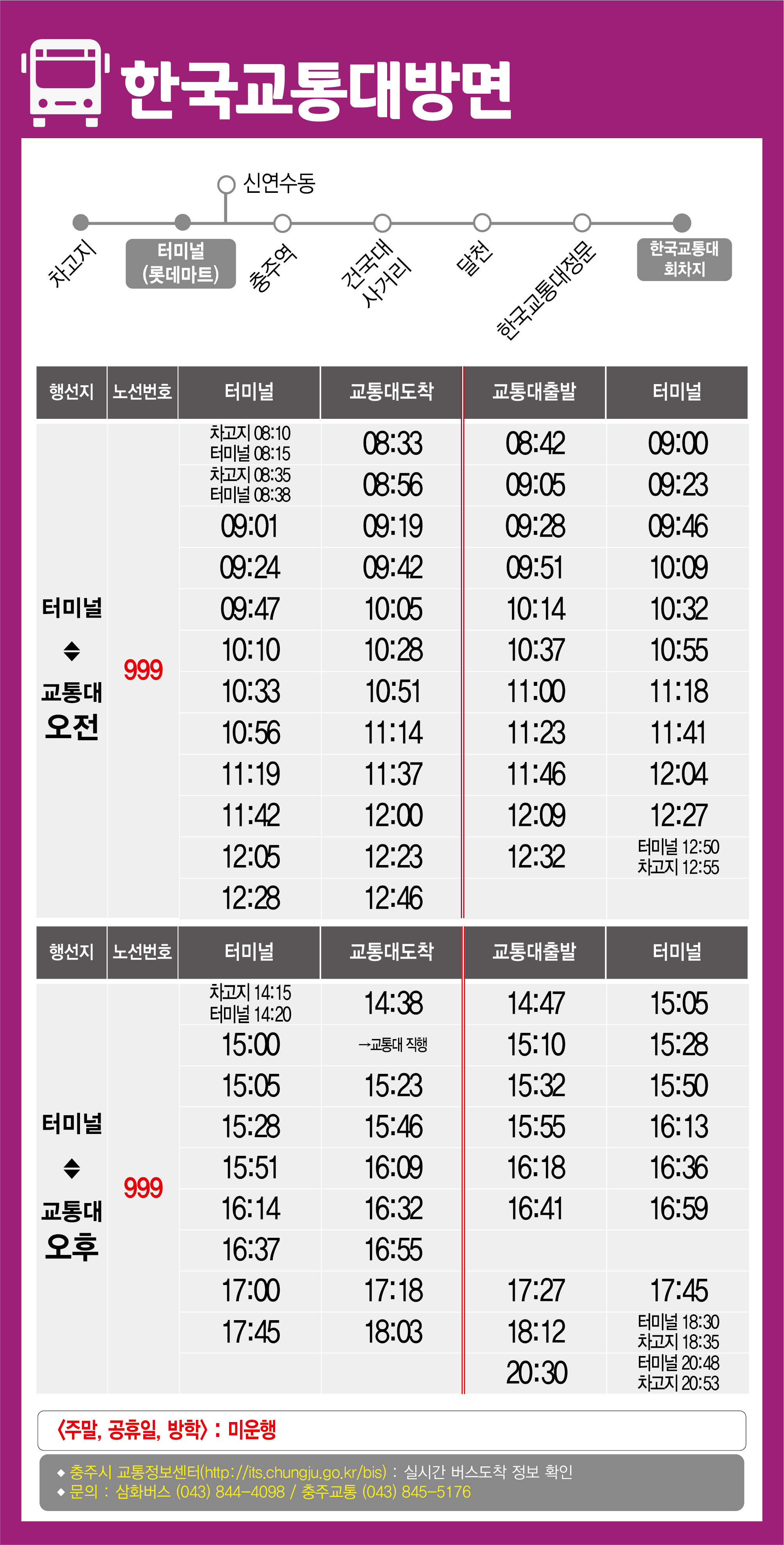 충주 999번 한국교통대방면 버스 시간표