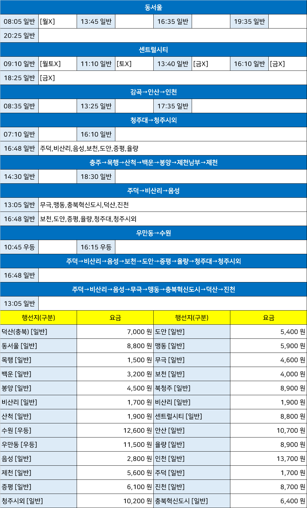 | 충주건국대시외고속버스터미널 시간표 [충주건국대정류소 충주건국대정류장 단월동터미널] (0) | 2025.03.24 |