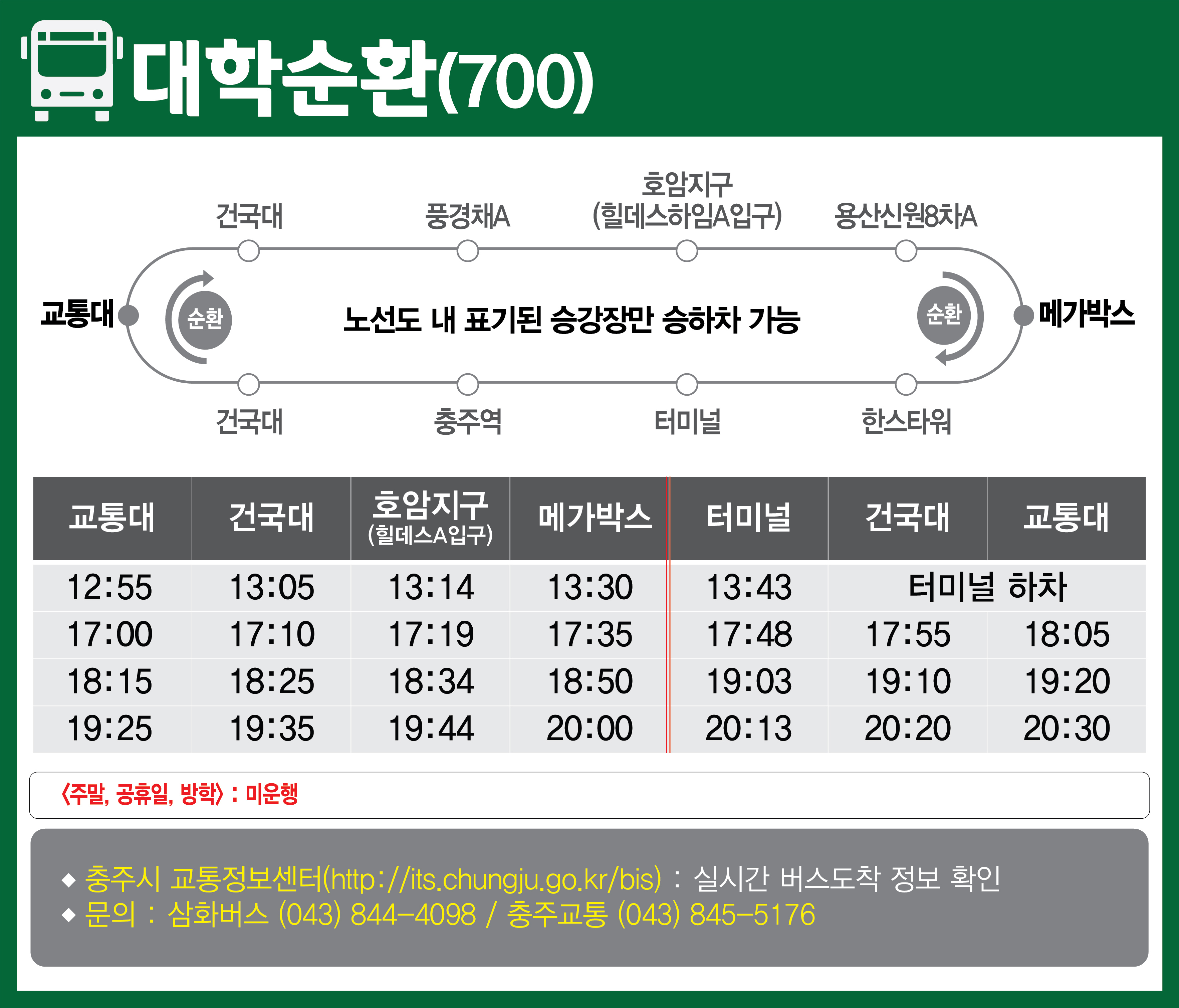 대학순환 충주 700번 버스 시간표