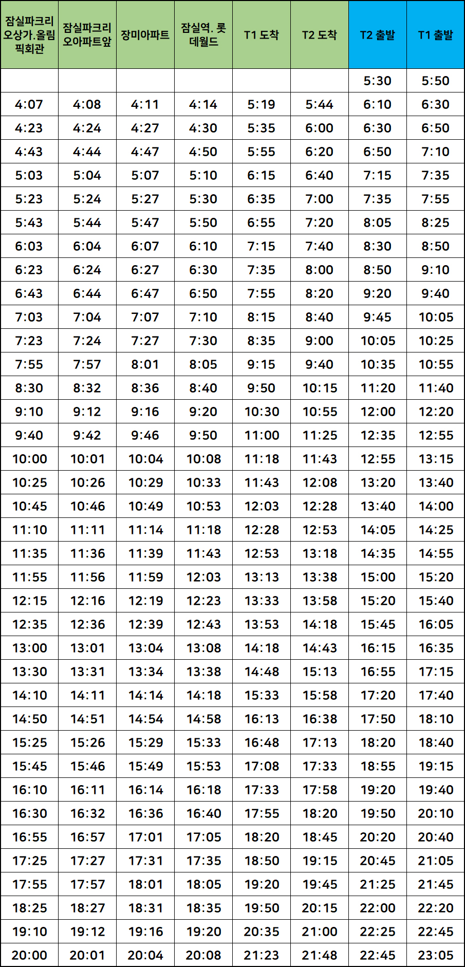 공항버스 6006 운행시간 잠실새내역 ↔ 인천공항 리무진버스운행정보 (0) | 2025.02.11 |