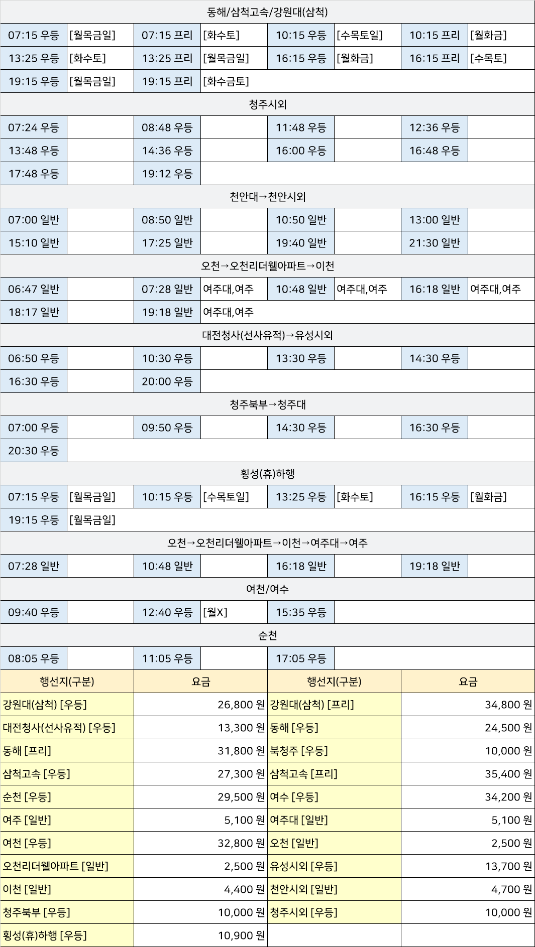 신갈 시외버스 정류장 시간표/요금표 2025년 04월 05일 기준