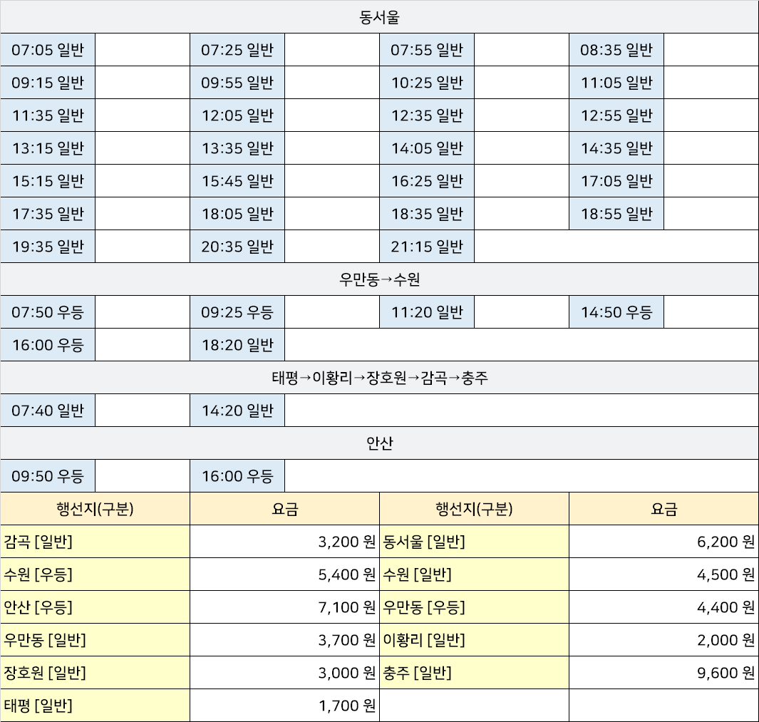 SK하이닉스 아미리 시외버스 정류장 시간표/요금표 2025년 04월 12일 기준