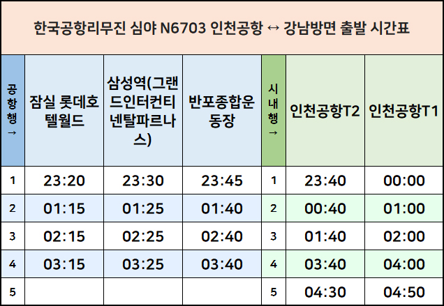 ▶ 공항버스 심야 N6703 노선 & 출발 시간표