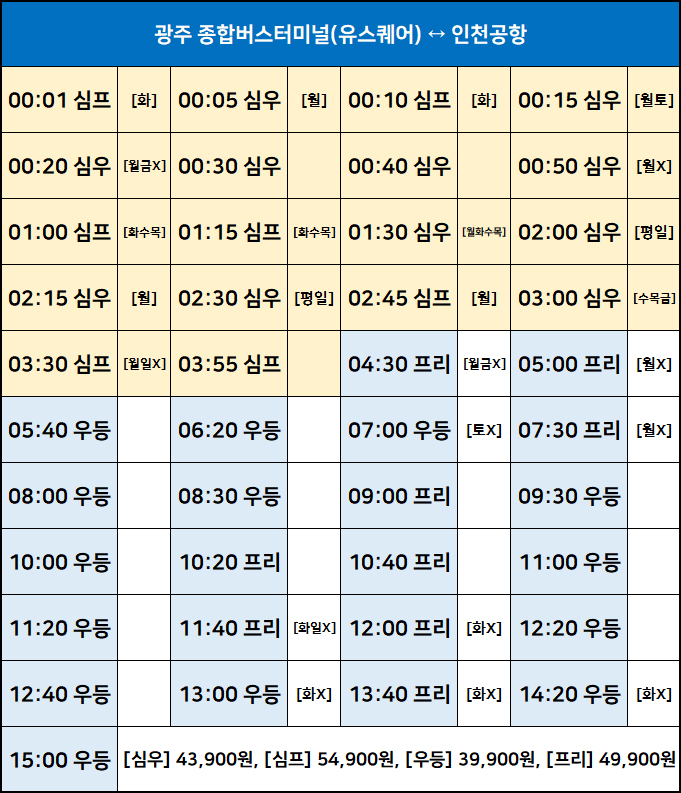 | 여수 순천 ↔ 인천공항 리무진 버스 시간표 요금 노선정보 (0) | 2025.03.11 |