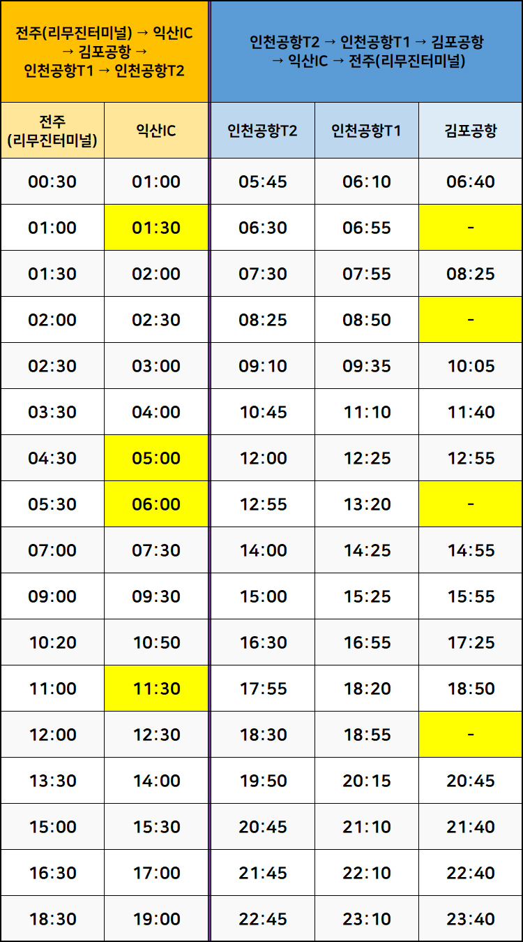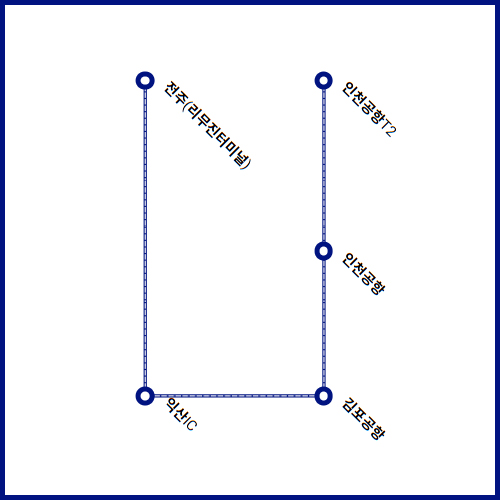 인천공항T2 - 인천공항T1 - 김포공항 - 익산IC - 전주(리무진터미널)