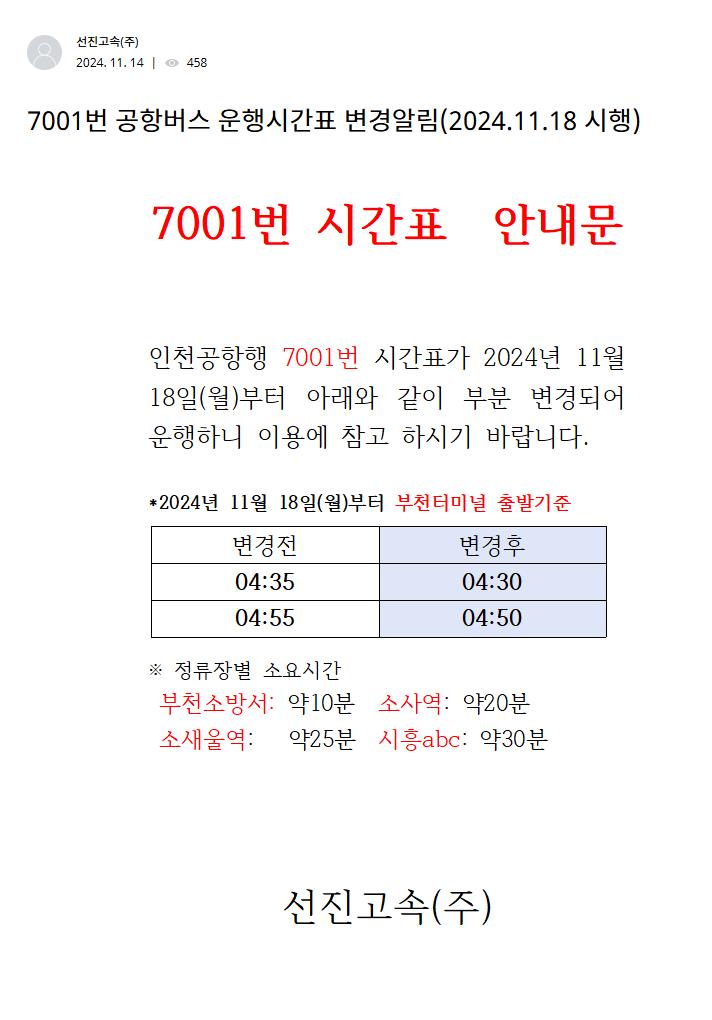 ▶ 공항버스 7001 노선 정보