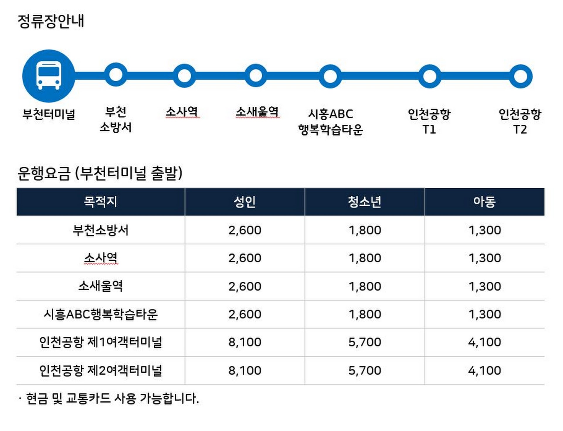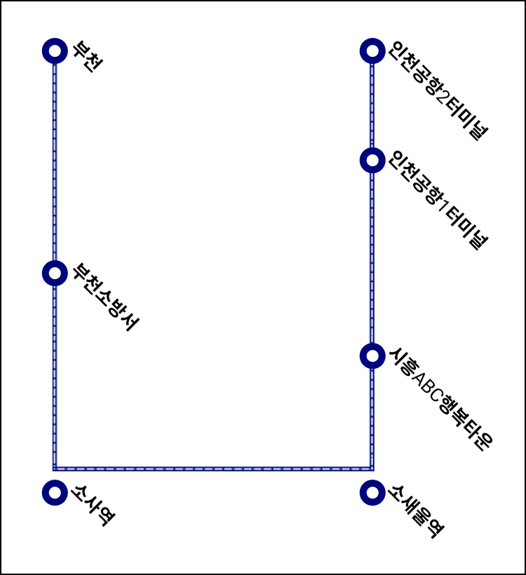 인천공항2터미널 → 인천공항1터미널 → 시흥ABC행복타운 → 소새울역 → 소사역 → 부천소방서 → 부천
