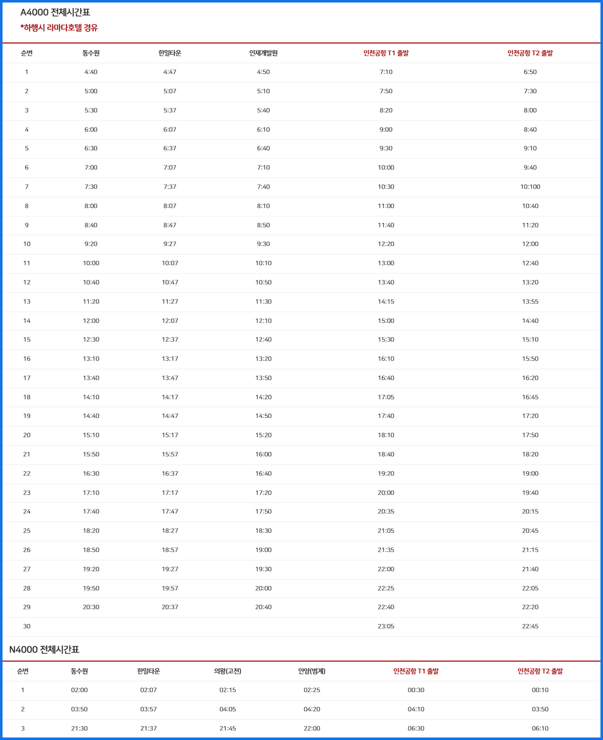 | 공항버스 4200번 4200-1번 시간표 노선정보 군포(산본) 안양(범계) 관악역 안양역 ↔ 인천공항 리무진 버스 (0) | 2025.01.14 |