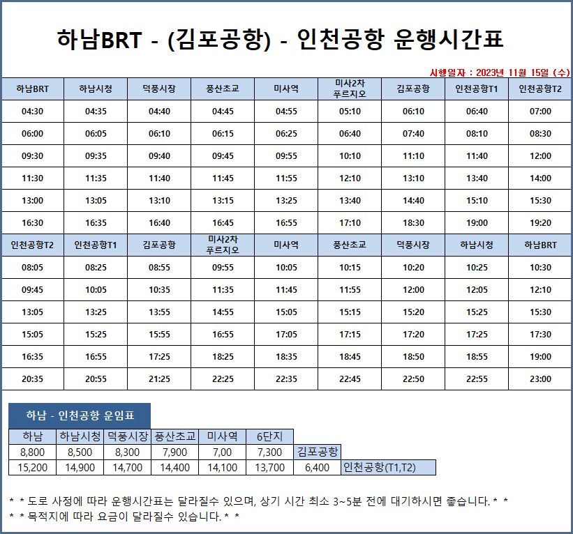 ▶ 하남 ↔ 김포공항 ↔ 인천공항