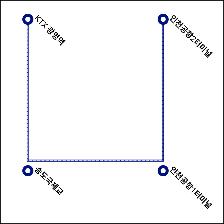 인천공항2터미널 → 인천공항1터미널 → 송도국제교 → KTX 광명역