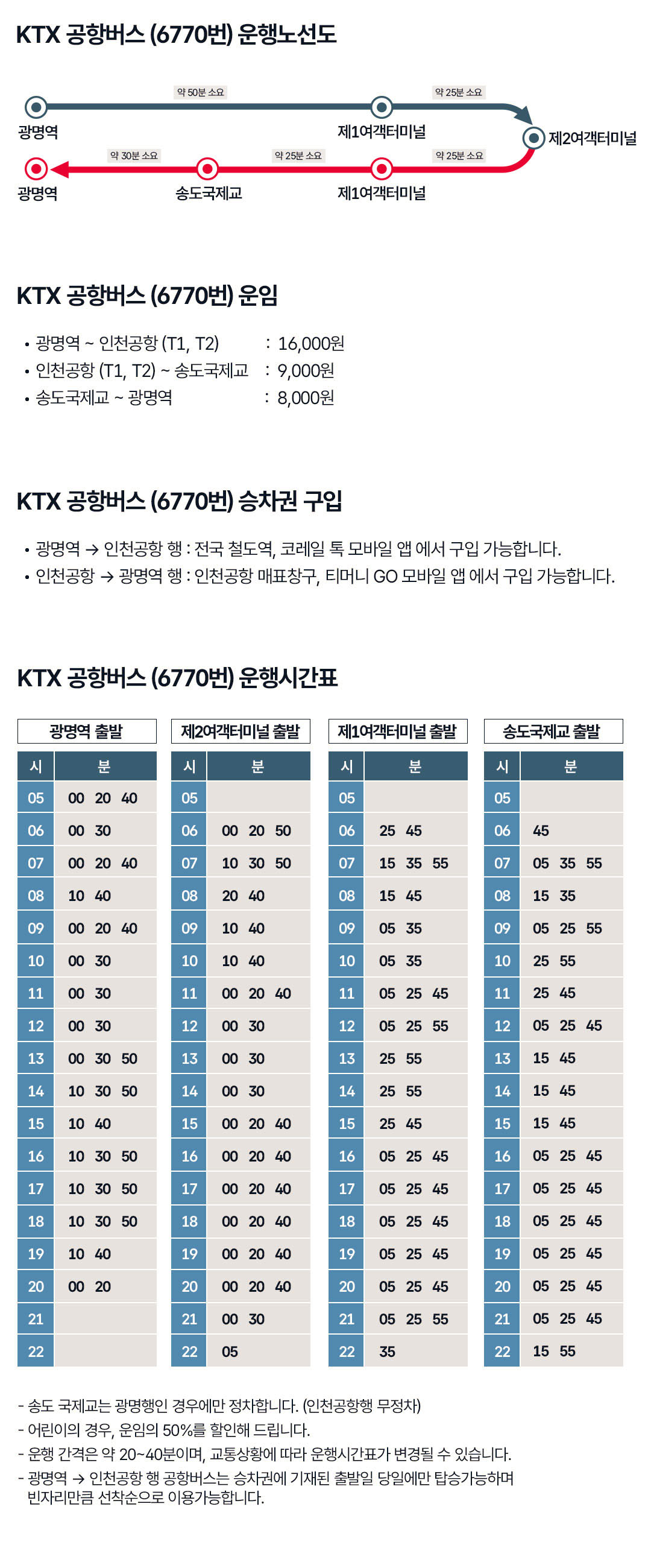 KTX광명역 ↔ 도심공항터미널 ↔ 인천공항