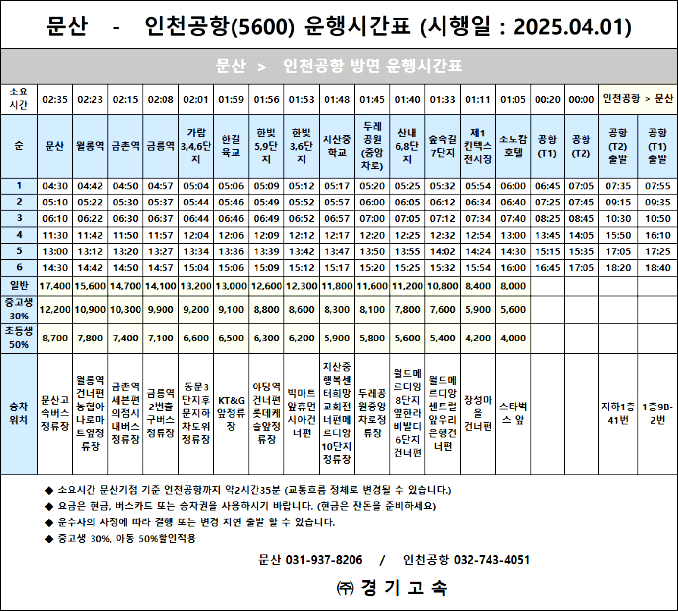 ▶ 문산 → 인천공항 5600 시간표