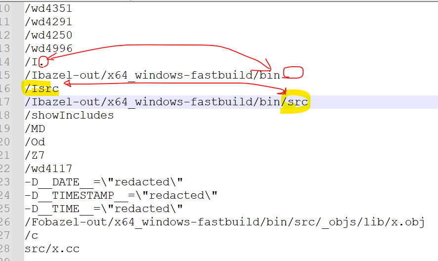 int sum(int a, int b) { std::cout << "STR:" << STR <<" sum:" << ( a + b) <<"\n"; return a + b ; }cc_binary는 cc_library의 name을 deps 항목에 적어주면, cc_library의 includes 항목이 그대로 전파됨으로 그냥 x.h 형태로 사용할 수 있다.