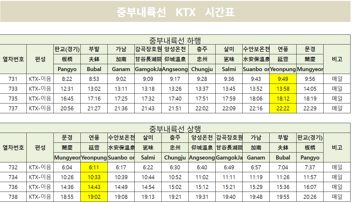 KTX연풍역(신풍) 농어촌버스 시간표: