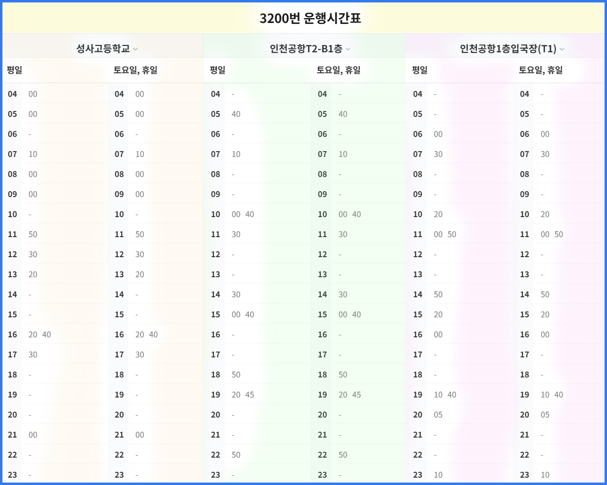 공항버스 3200번 운행 시간표
