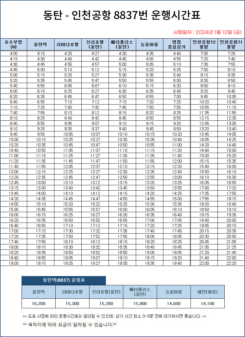 | 공항버스 8852번 8282번 운행 시간표 용인터미널 ↔ 인천공항 리무진 (0) | 2025.01.22 |
