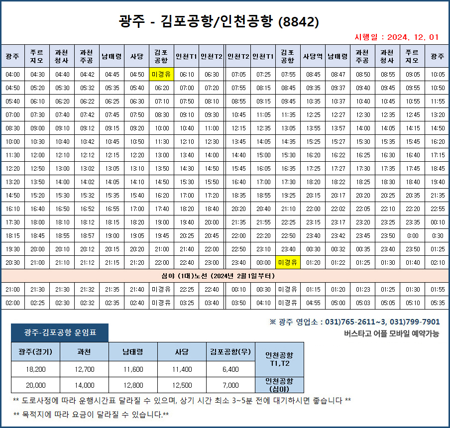 ▶ 공항버스 8842 N8842 출발 시간표 & 요금 ↓