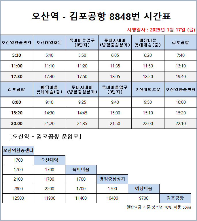 ▶ 공항버스 8848번 운행 시간표 & 요금 ↑