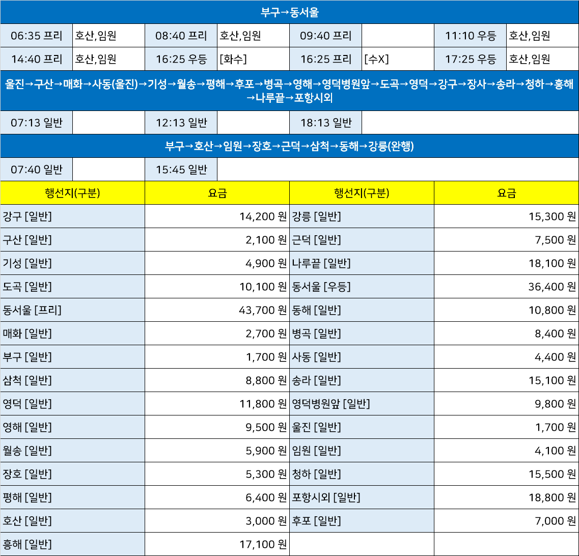 | 부구시외고속버스터미널 시간표[부구정류장 부구정류소] (0) | 2025.03.25 |