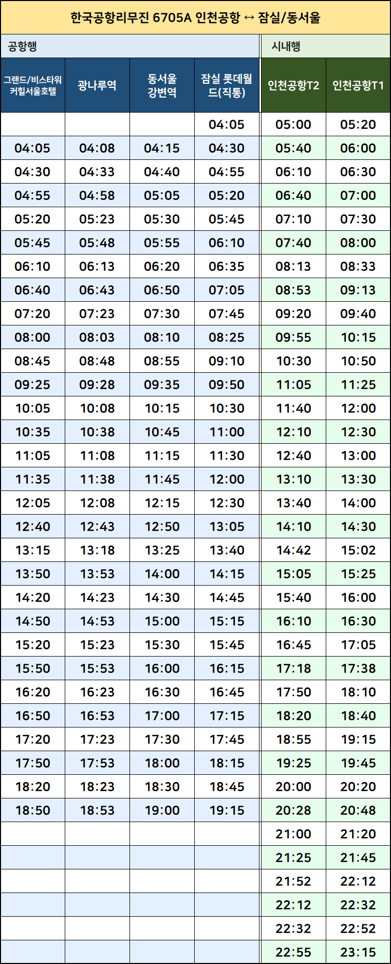 ▶ 공항버스 6705A 서울방면 노선 & 출발 시간표