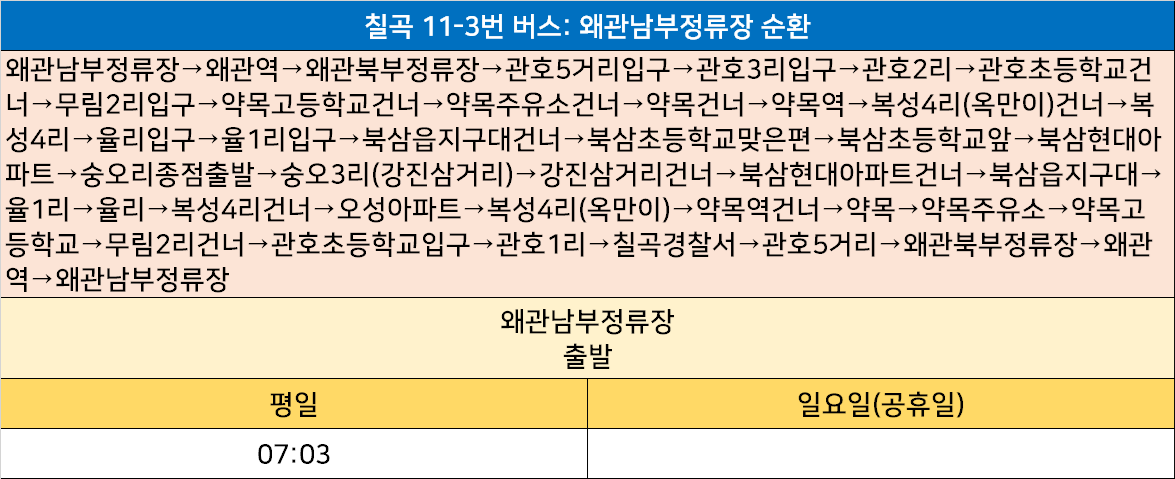 칠곡 11-3번 버스: 왜관남부정류장 순환
