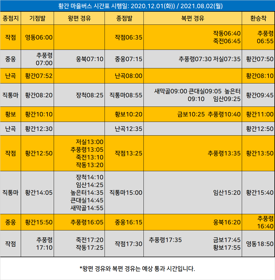 황간마을버스 시간표