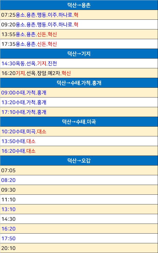 덕산 진천 시외버스 정류장 시간표/요금표 2025년 03월 28일 기준