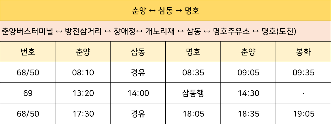 춘양 ↔ 삼동 ↔ 명호 버스: