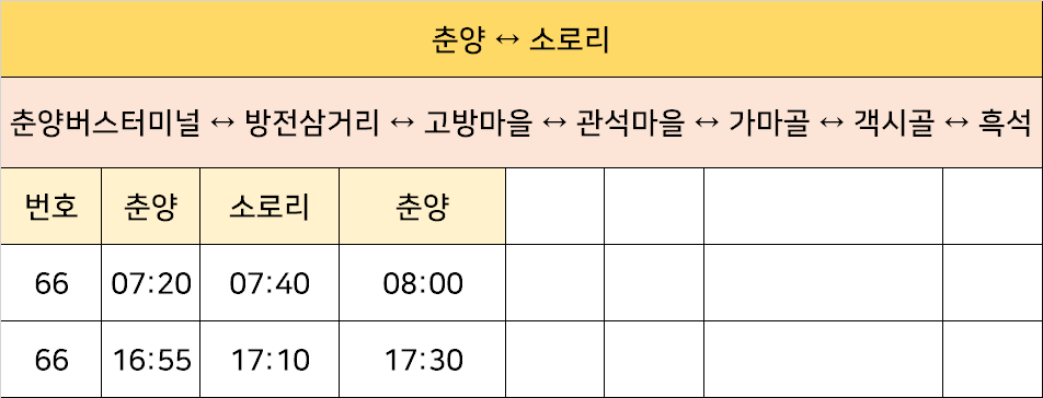 춘양 ↔ 소로리 버스: