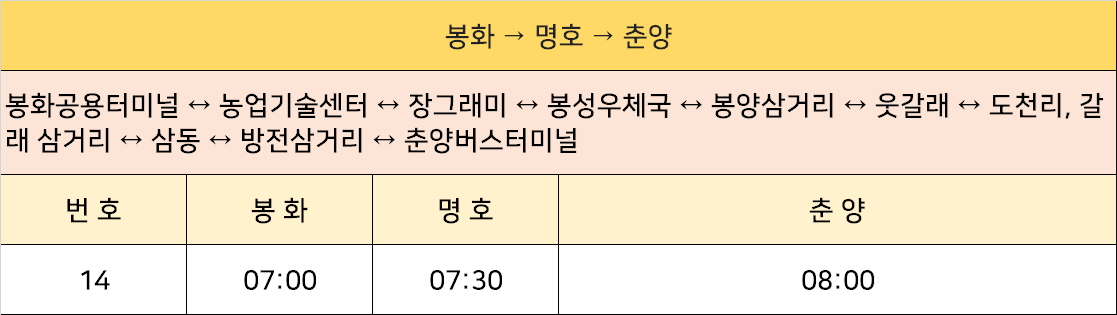 봉화 → 명호 → 춘양 버스: