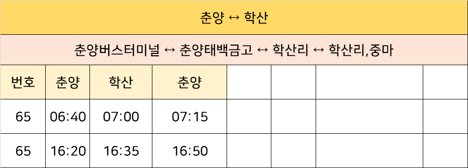춘양버스터미널 ↔ 춘양태백금고 ↔ 학산리 ↔ 학산리,중마