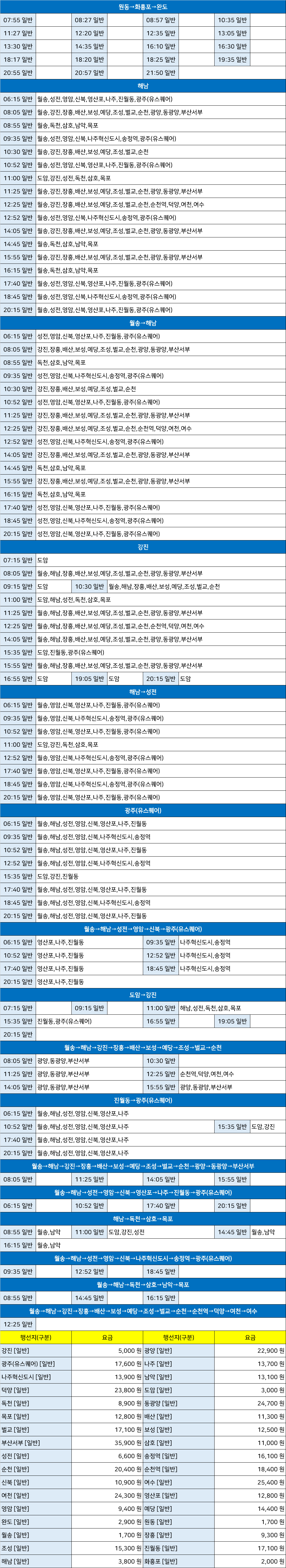 남창 시외버스 터미널 시간표/요금표 2025년 03월 22일 기준