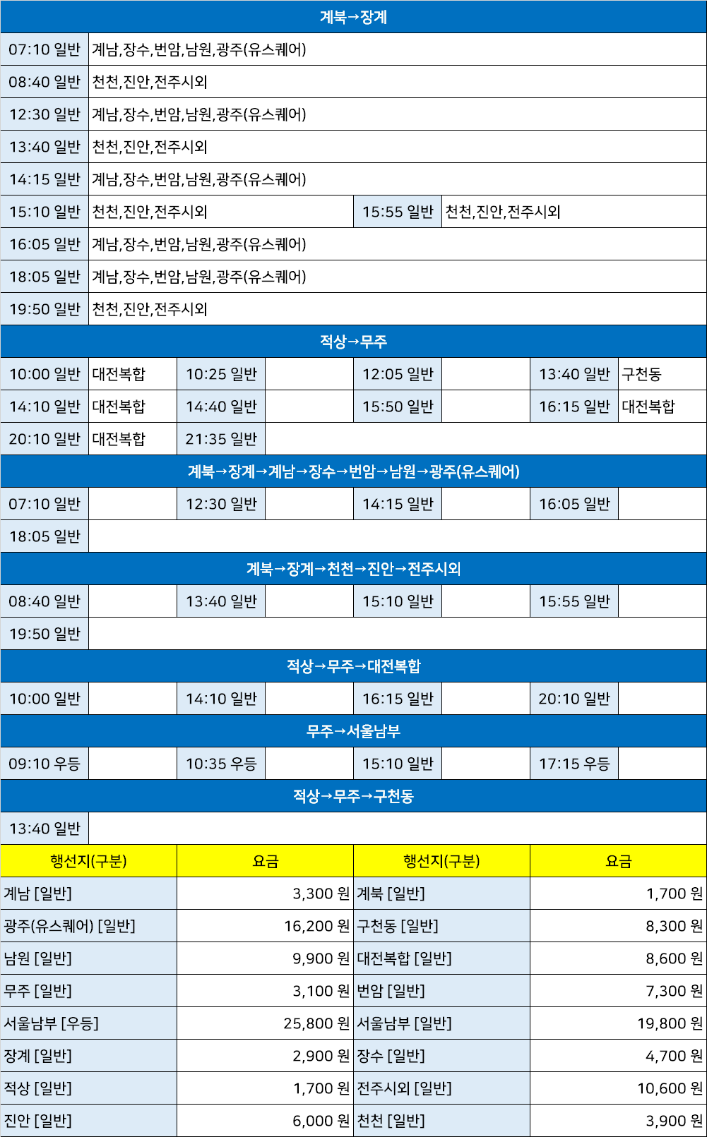 무주안성 시외버스 터미널 시간표/요금표 2025년 03월 23일 기준