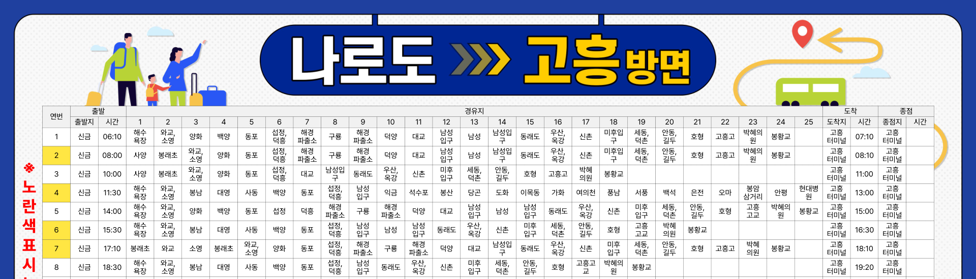 나로도 시외버스 터미널 시간표/요금표 2025년 03월 27일 기준