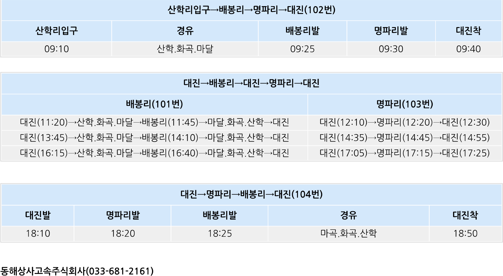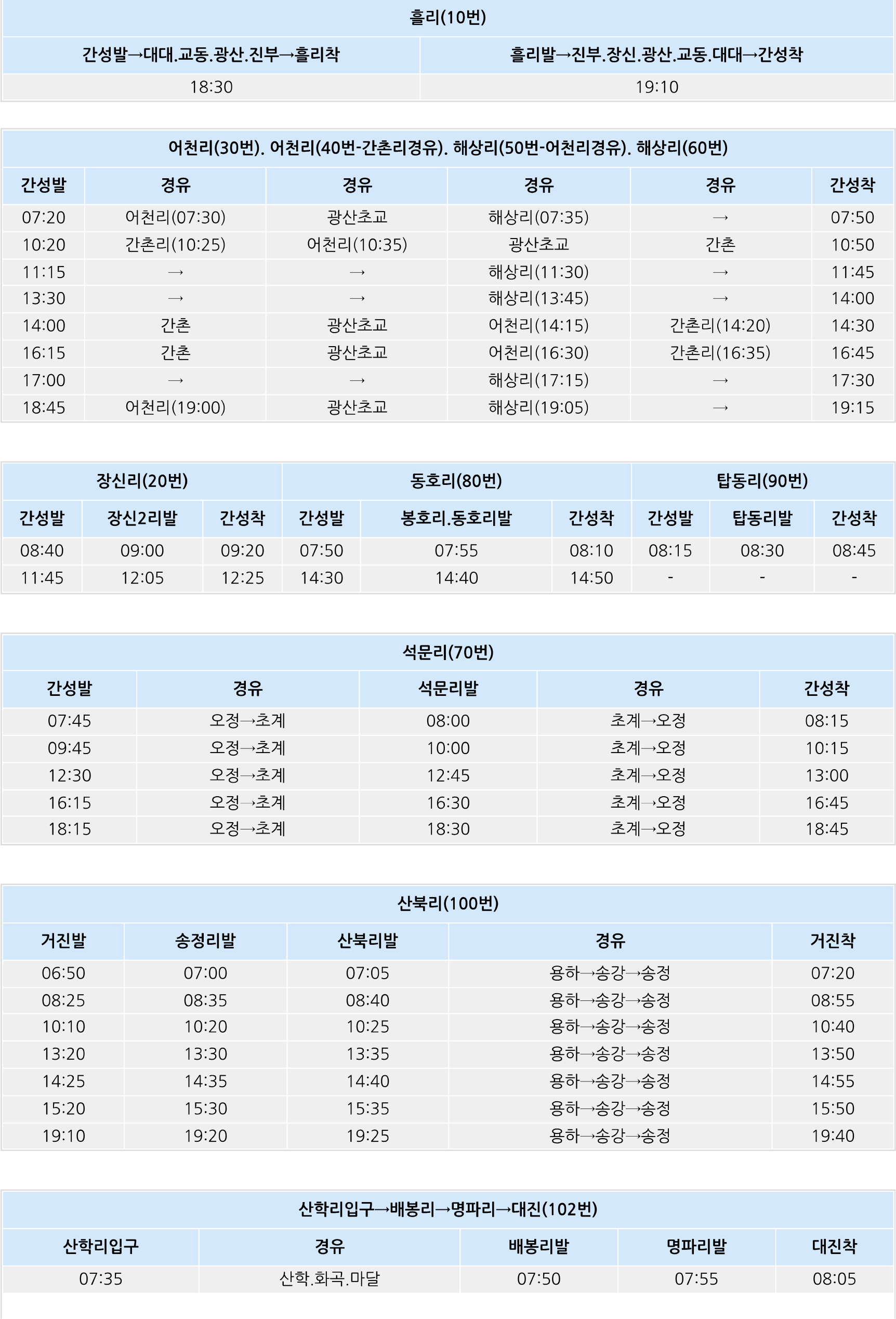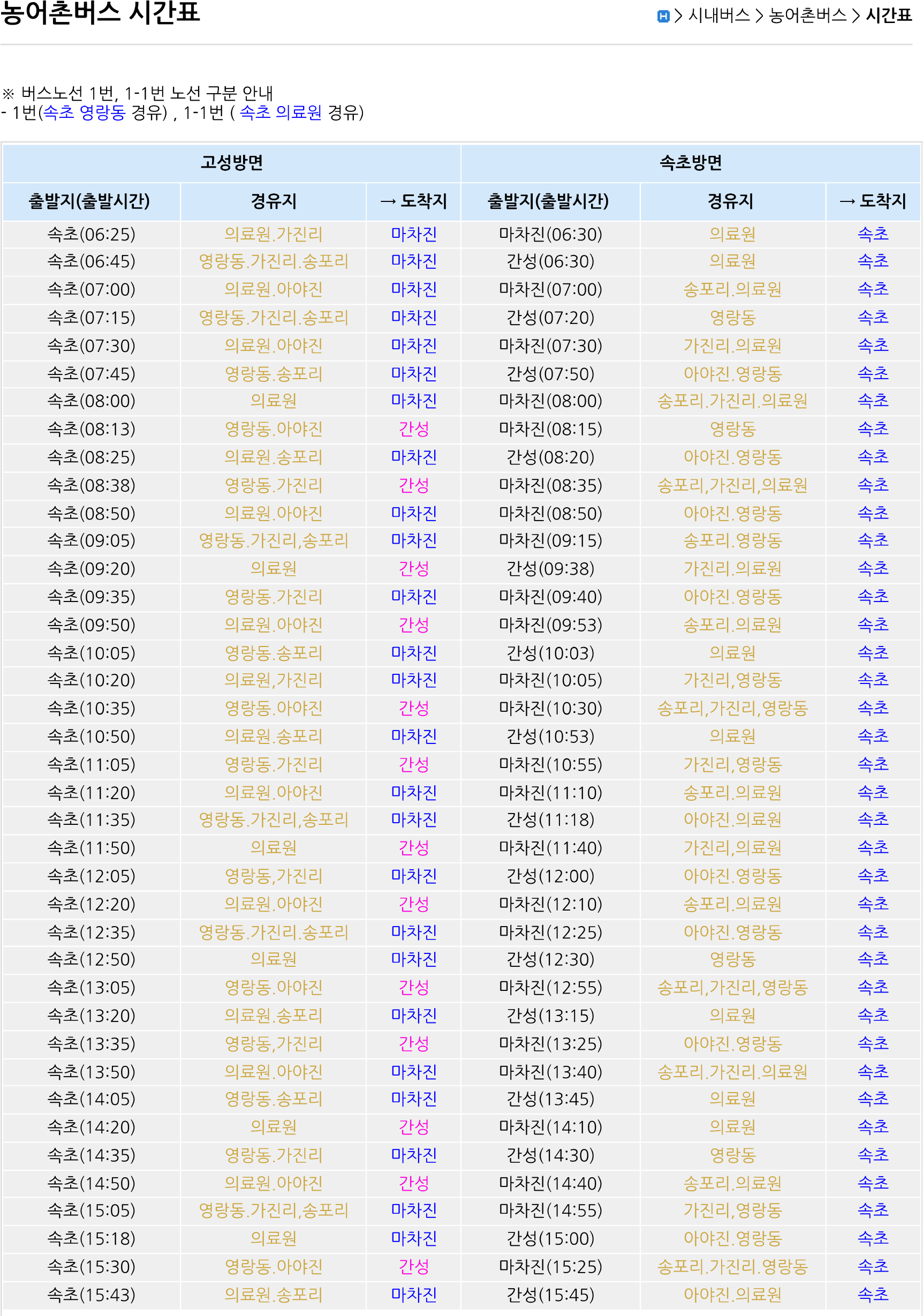 강원도 고성 농어촌버스 시간표 - 고성 대중교통 정보