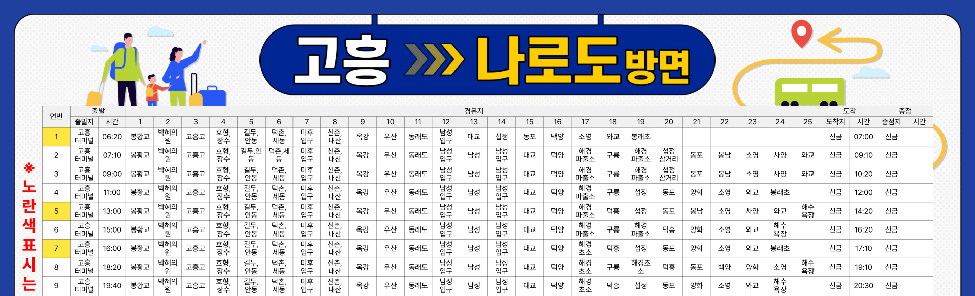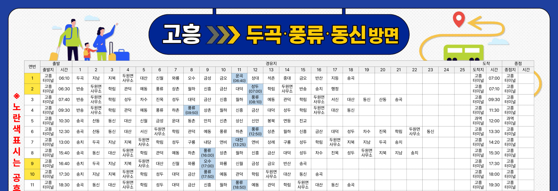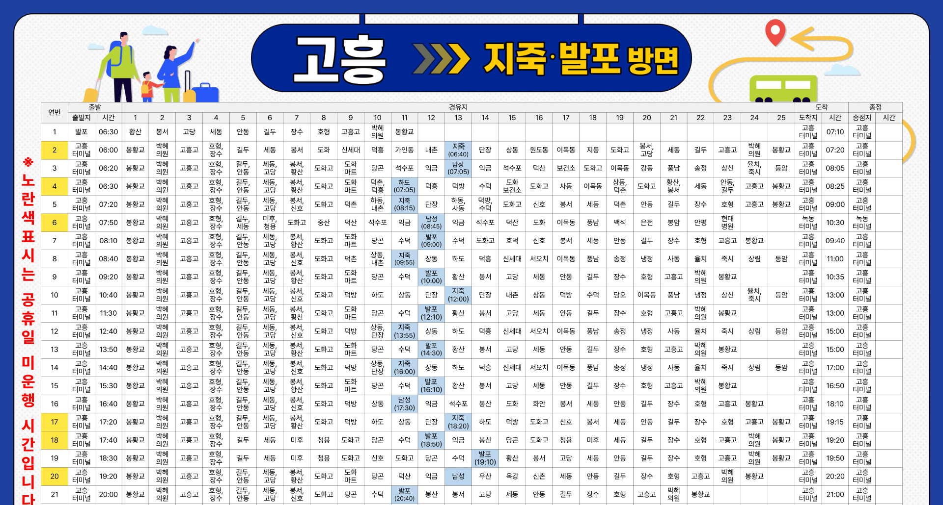 고흥 시외버스 터미널 시간표/요금표 2025년 03월 27일 기준